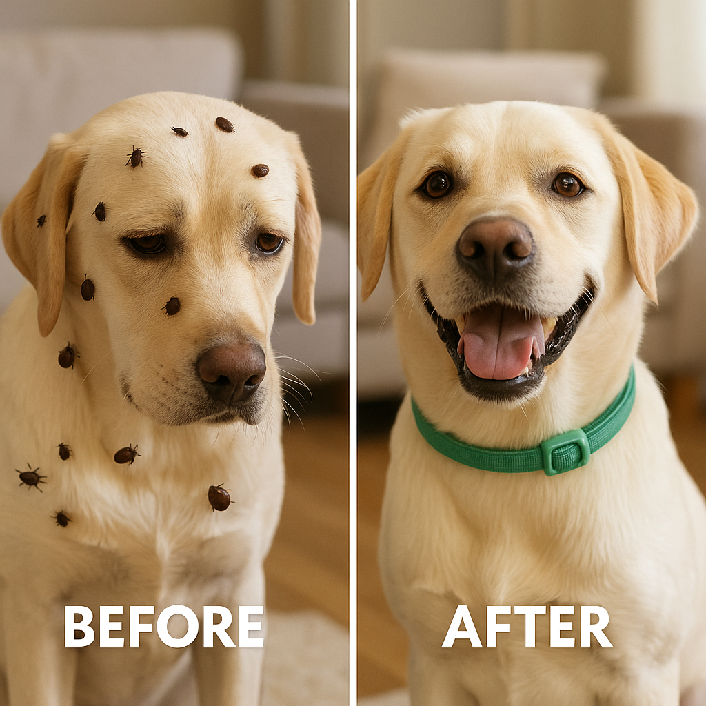 A gentle, plant-powered flea collar that shields your pet from fleas, ticks, and mosquitoes — without the chemicals, burns, or guilt.